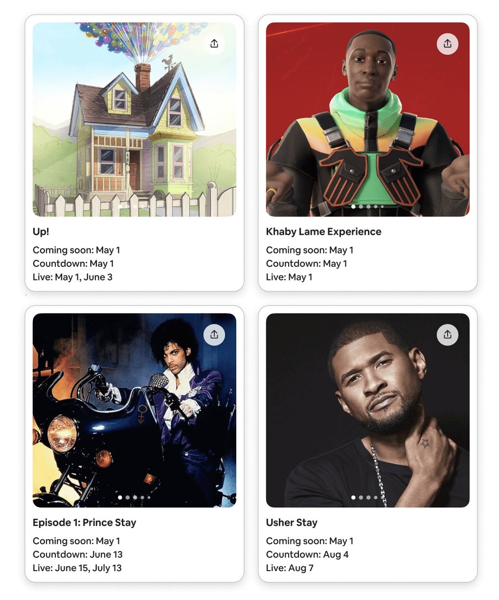 Airbnb Icons was a launch that Airbnb did in May of 2024 where they introduced Airbnb experiences and homes that partner with celebrities and popular franchises. Over the course of 6 months after the launch, a new Icon would drop twice a week in the app on Wednesdays and Sundays. Each Icon drop would go through a lifecycle of the following: