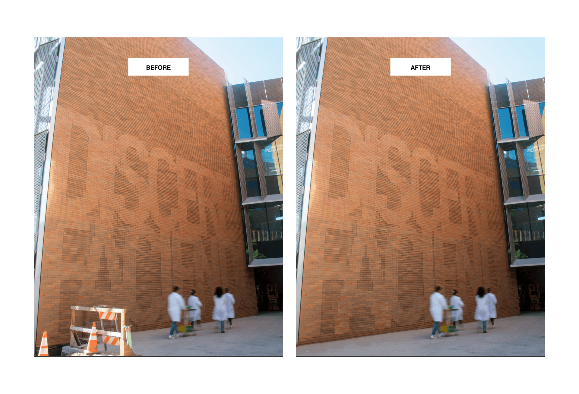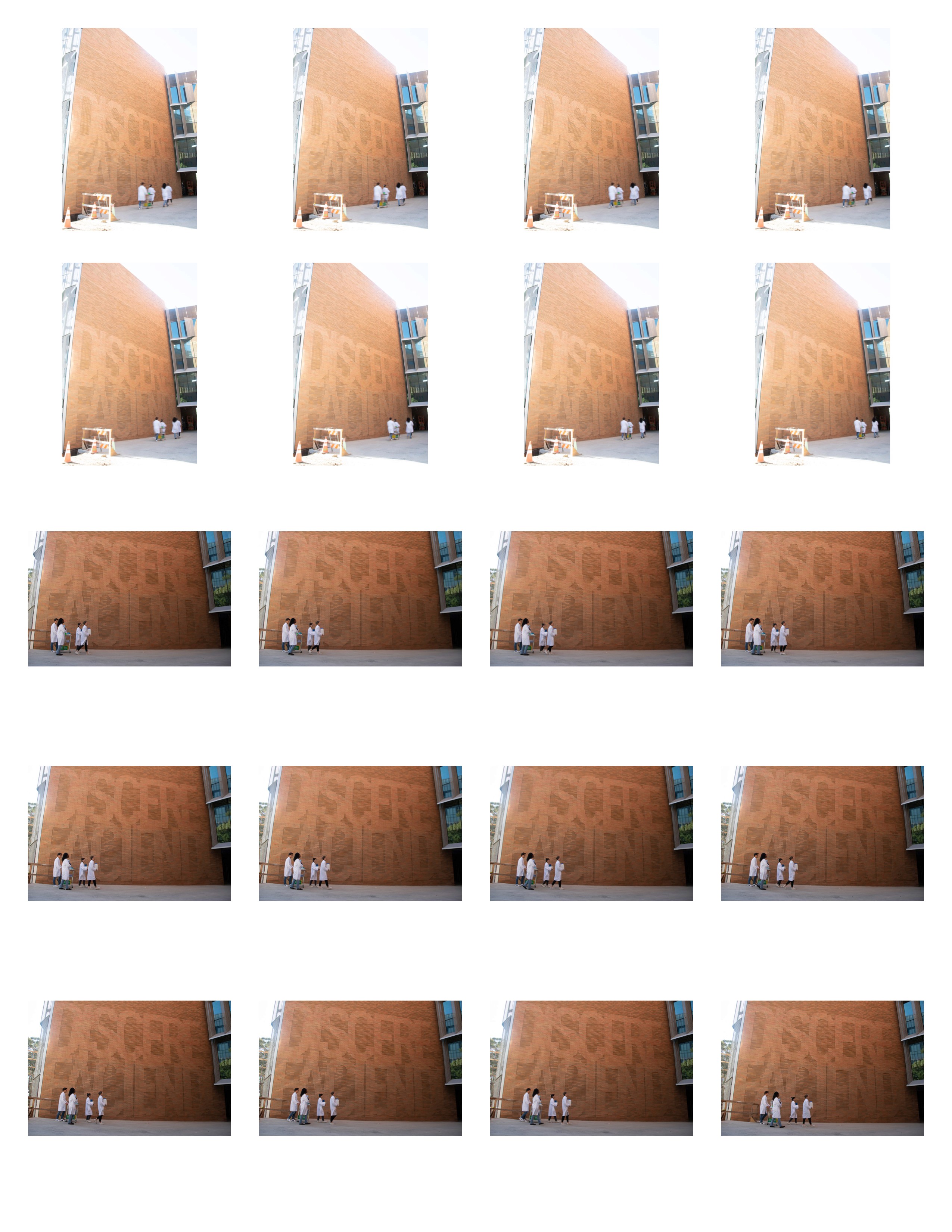 My supervisors had the idea to have real students and faculty shown on the front cover in front of a new wall at Cal Poly that reads ‘DISCERE FACIENDO’ (‘Learn By Doing’ in Latin). The goal was to get them slightly out of focus while walking into the building which took some time to get exactly right as can be seen by the contact sheets below.